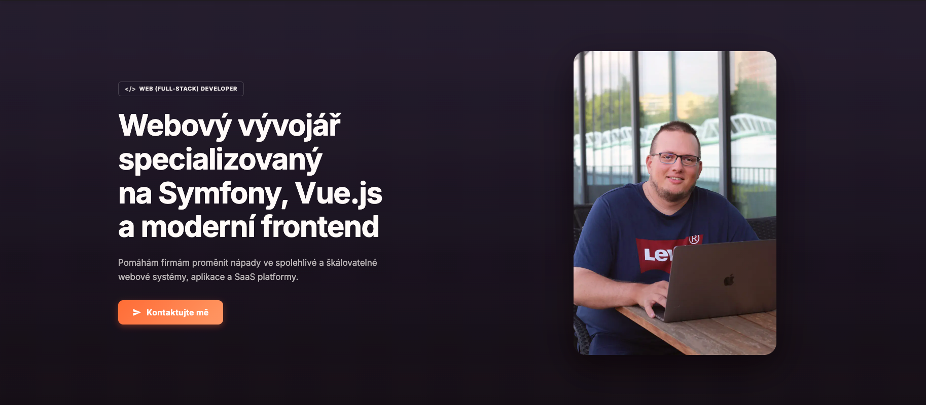 Specializuji se na Symfony, Vue.js, Drupal, Node.js a provoz na AWS.